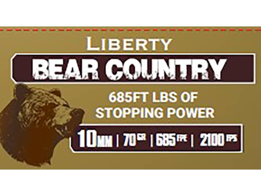 Liberty Ammunition Bear Country 10mm Auto Ammo 70 Grain Solid Hollow Point Lead Free Box of 20