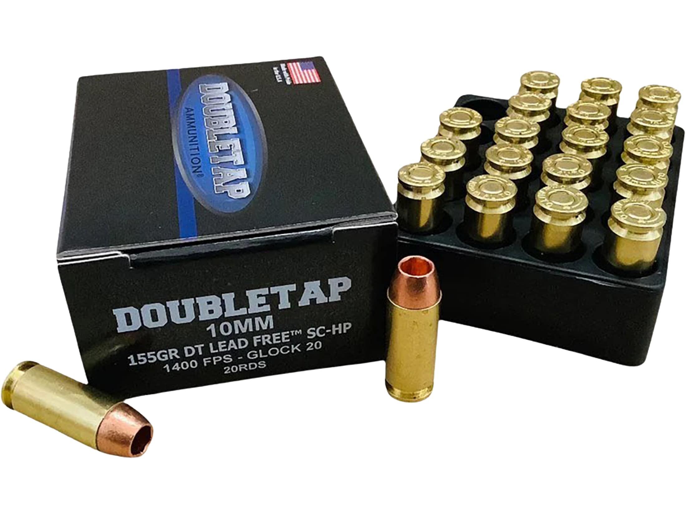 DoubleTap DT Lead Free 10mm Auto Ammo 155 Grain Solid Hollow Point Lead Free Box of 20