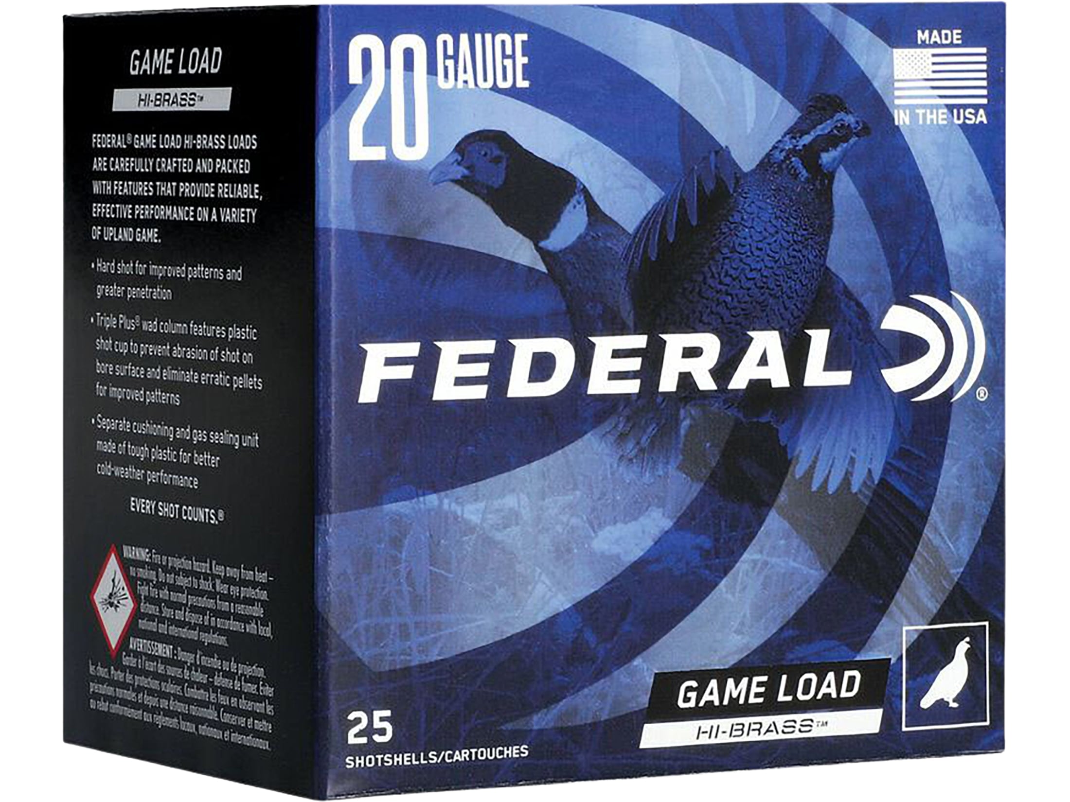 Federal Game Load Upland Hi-Brass 20 Gauge Ammo 2-3/4" #7-1/2 Lead Shot 1 oz Case of 250 (10 Boxes of 25)