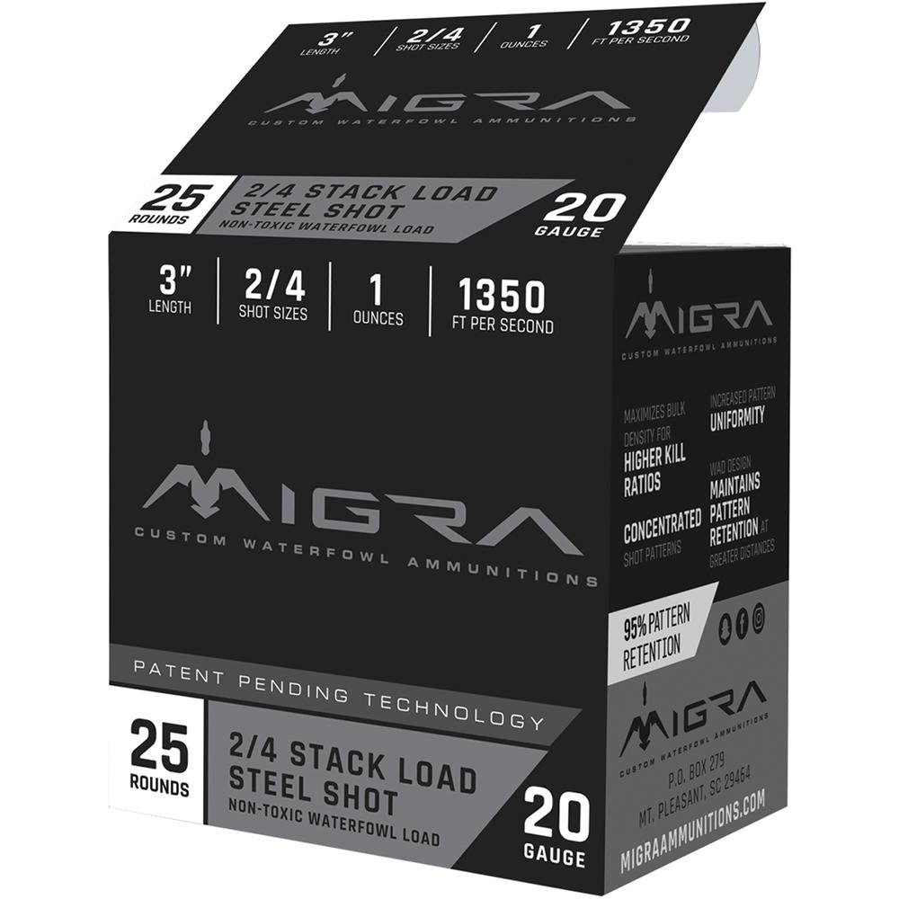 Migra Waterfowl Steel Shot Shotshell 20 ga 3" 1 oz 1350 fps #4 #6 25/ct