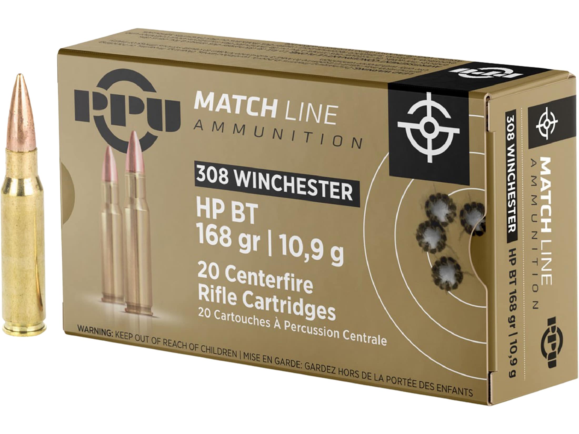 PPU Match Rifle Ammunition .308 Win Match 168 gr HPBT 2610 fps 20/ct