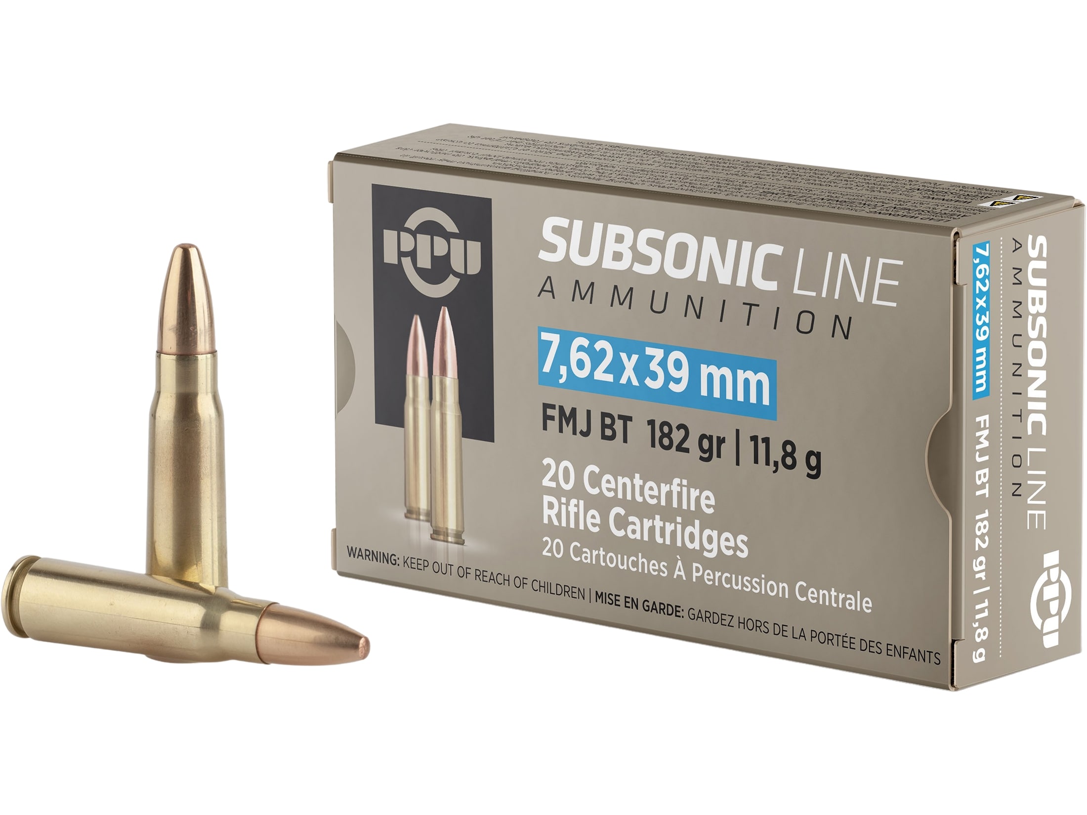 PPU Subsonic 7.62x39mm Ammo 182 Grain Full Metal Jacket Box of 20