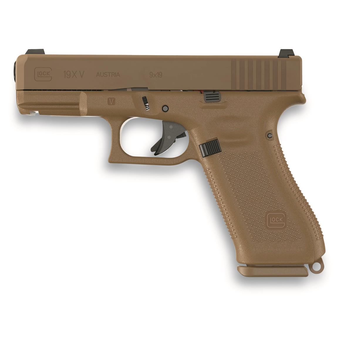 Glock 19X V 9mm, 4.02" Barrel, Night Sights, Coyote, 17+1/19+1 Rounds