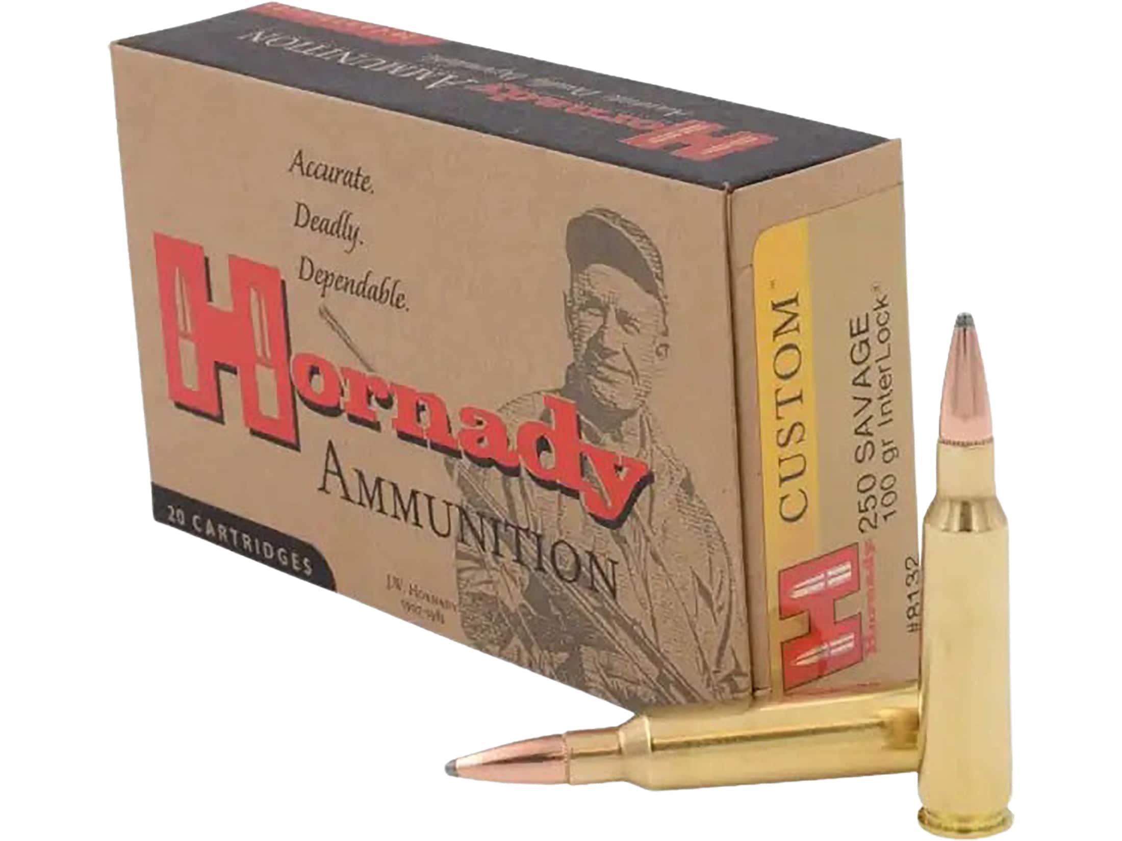 Hornady Custom 250 Savage Ammo 100 Grain Hornady Interlock Jacketed Soft Point Box of 20