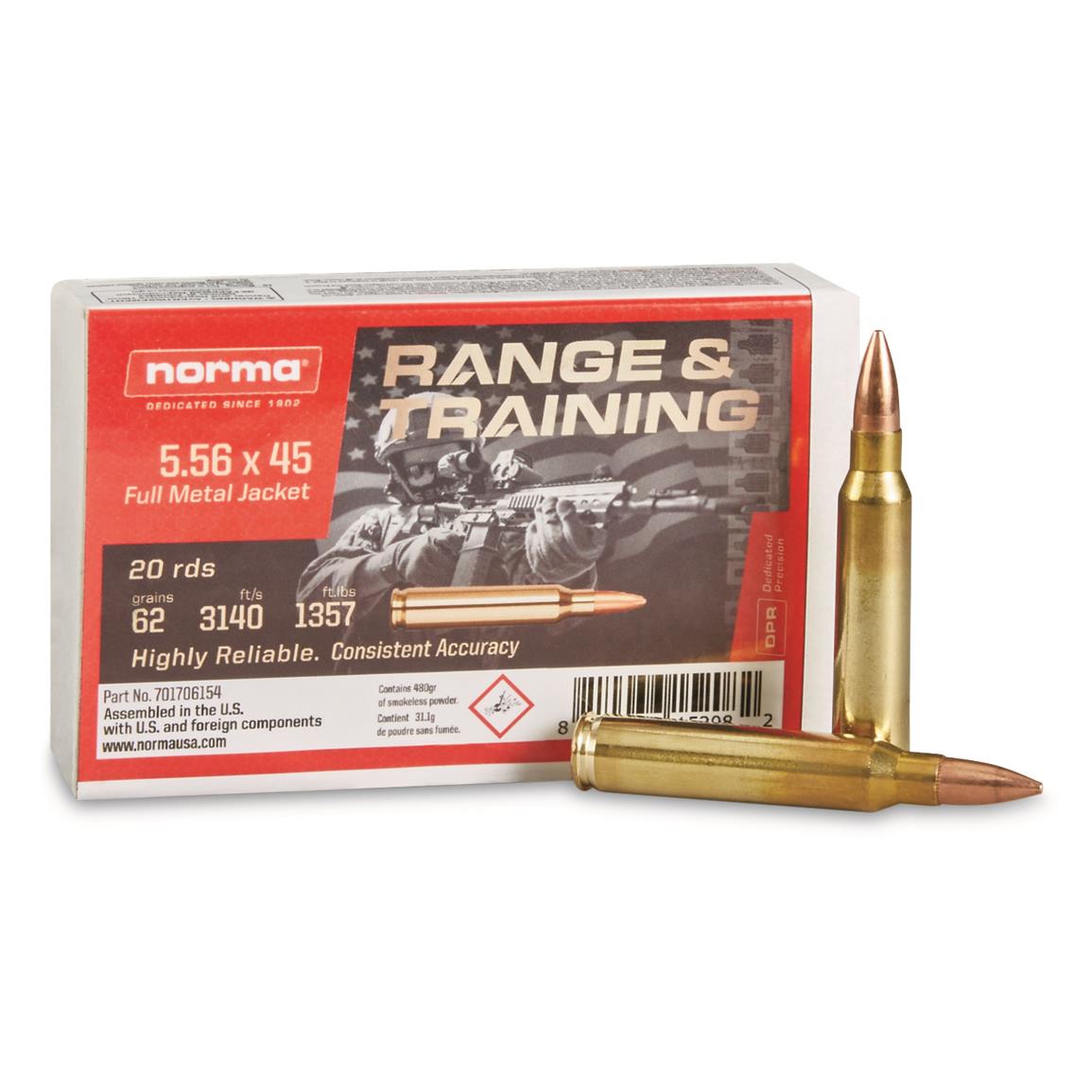 Norma Range & Training, 5.56x45mm NATO, FMJ, 62 Grain, 20 Rounds