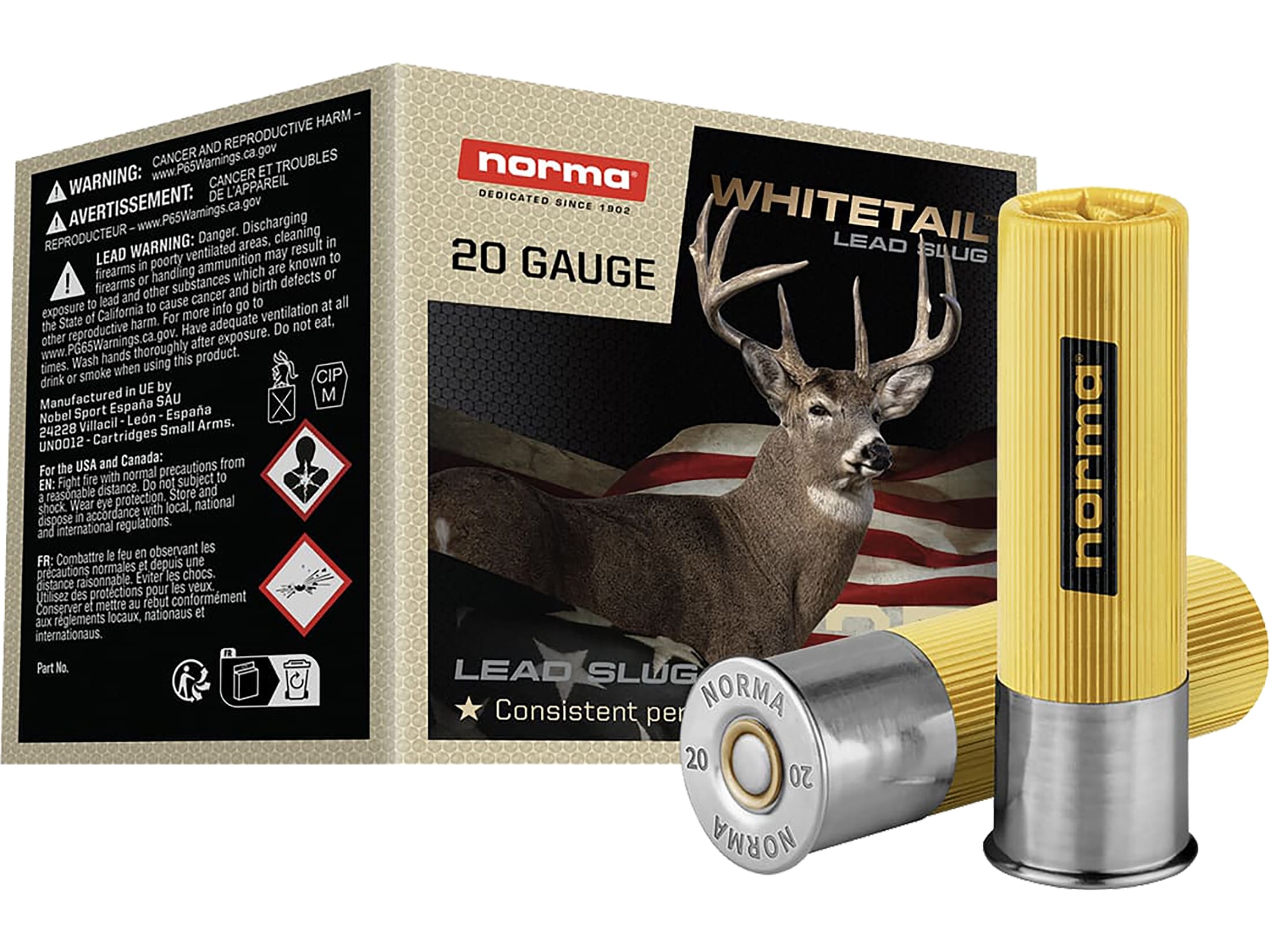 Norma Whitetail Rifled Slug Shotgun Ammo 20 Gauge 2.75 in 1 oz Slug