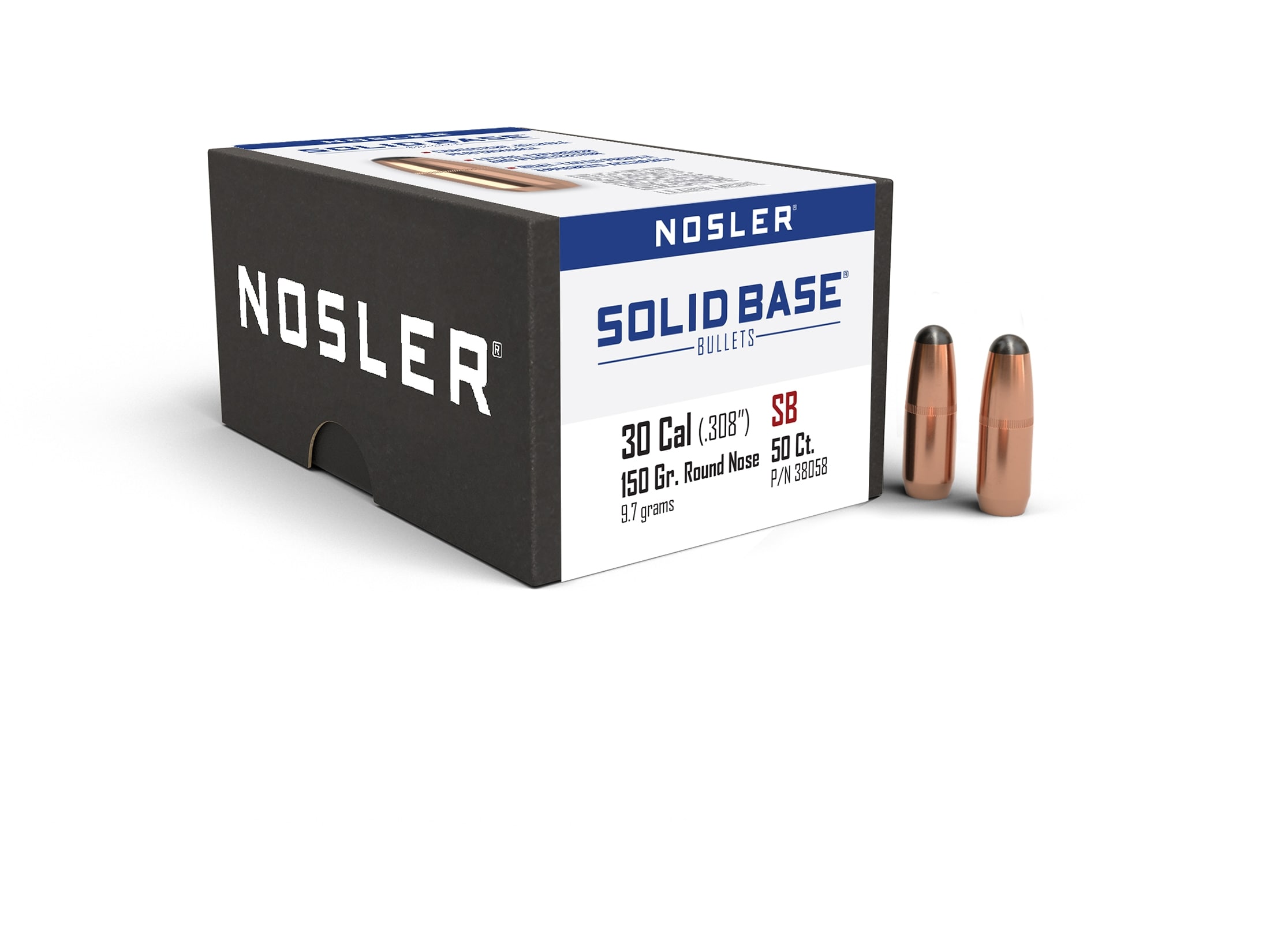 Nosler Solid Base Round Nose Rifle Bullets .30 Cal .308" 150 gr 50/ct