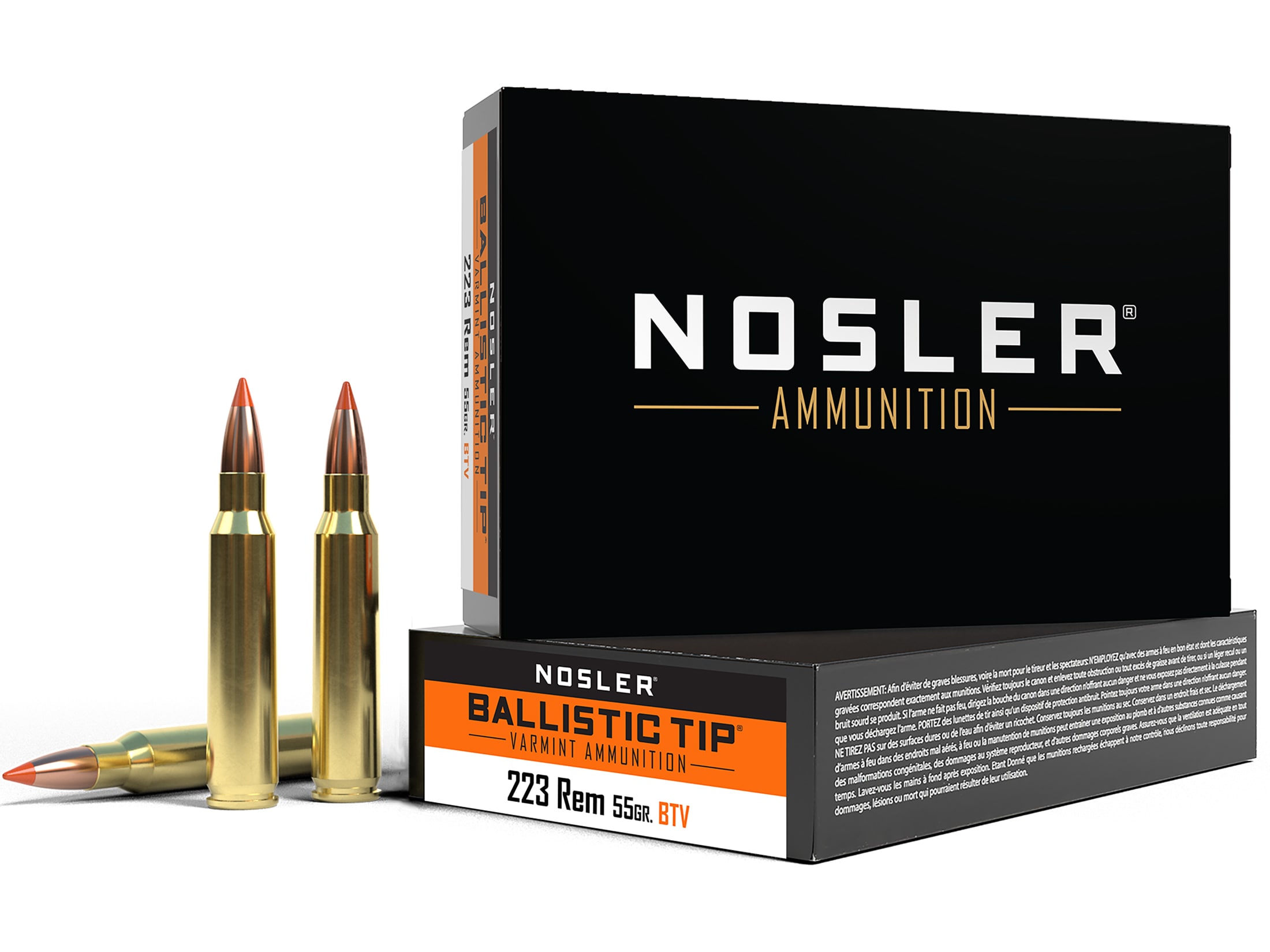 Nosler BT Varmint 223 Remington Ammo 55 Grain Nosler Ballistic Tip Polymer Tip Box of 20