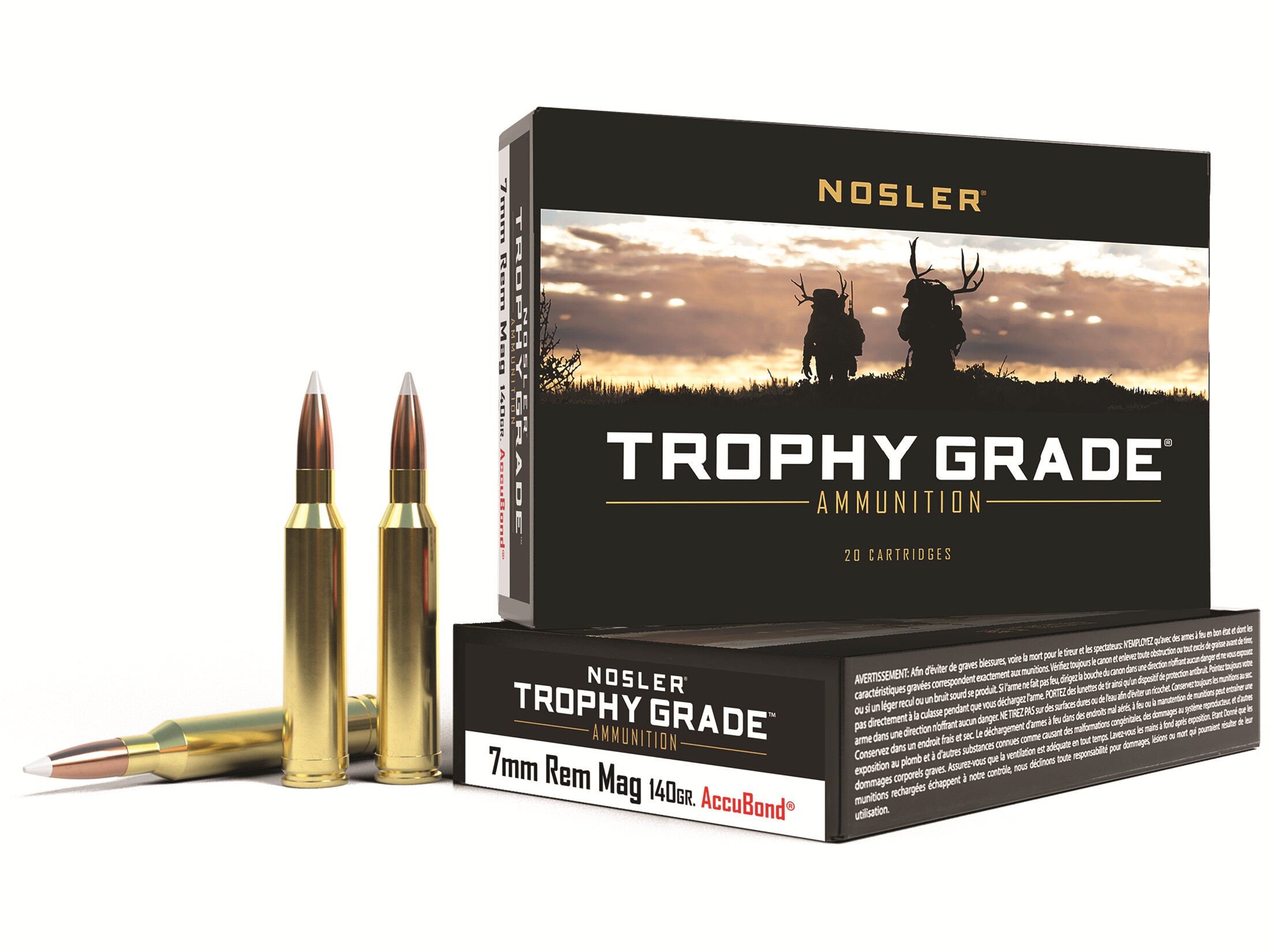 Nosler Trophy Grade 7mm Remington Magnum Ammo 140 Grain Nosler AccuBond Bonded Polymer Tip Box of 20