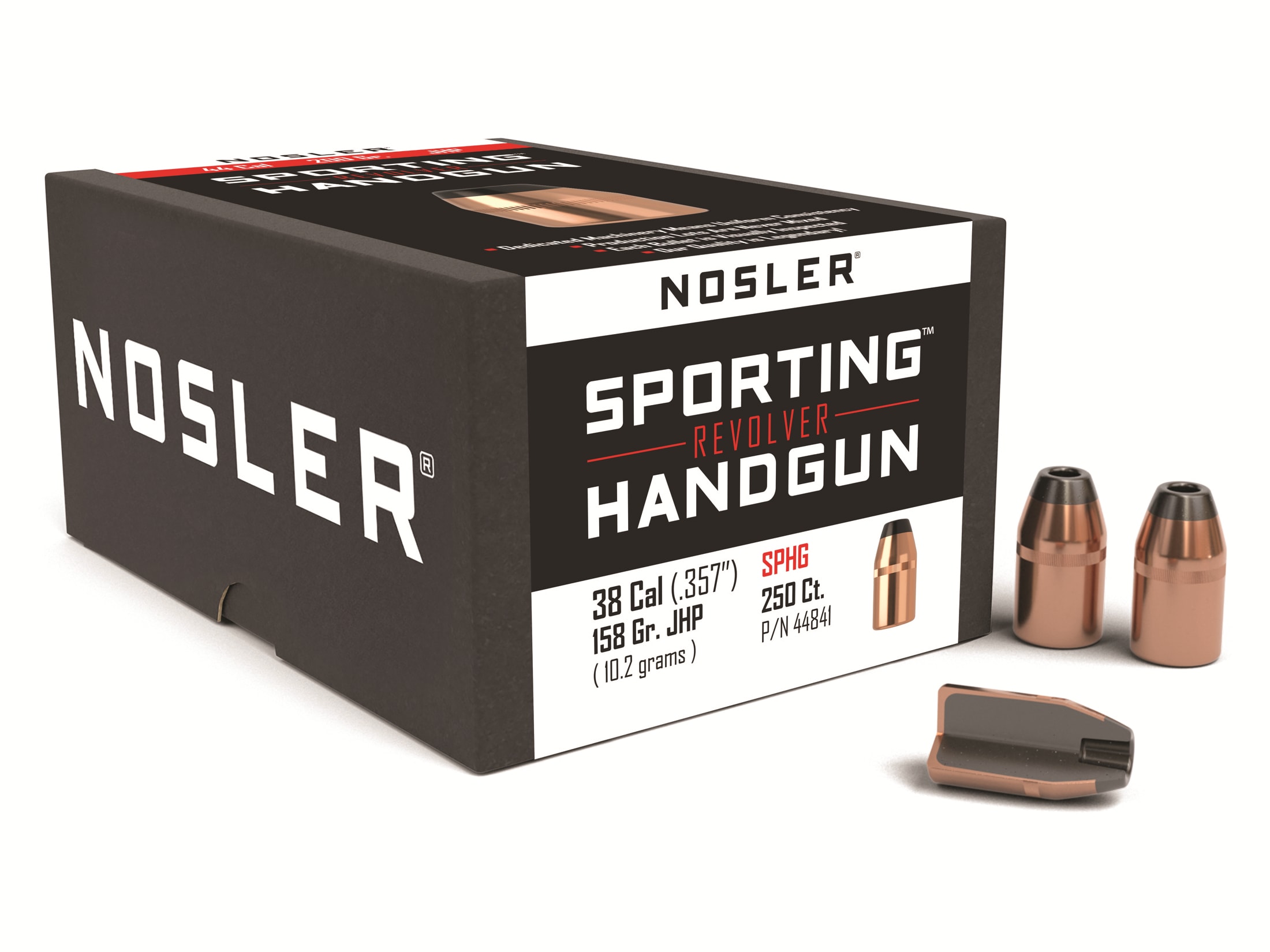 Nosler Sporting Handgun 38 Special, 357 Magnum (357 Diameter) Bullets 158 Grain Jacketed Hollow Point with Cannelure Box of 250