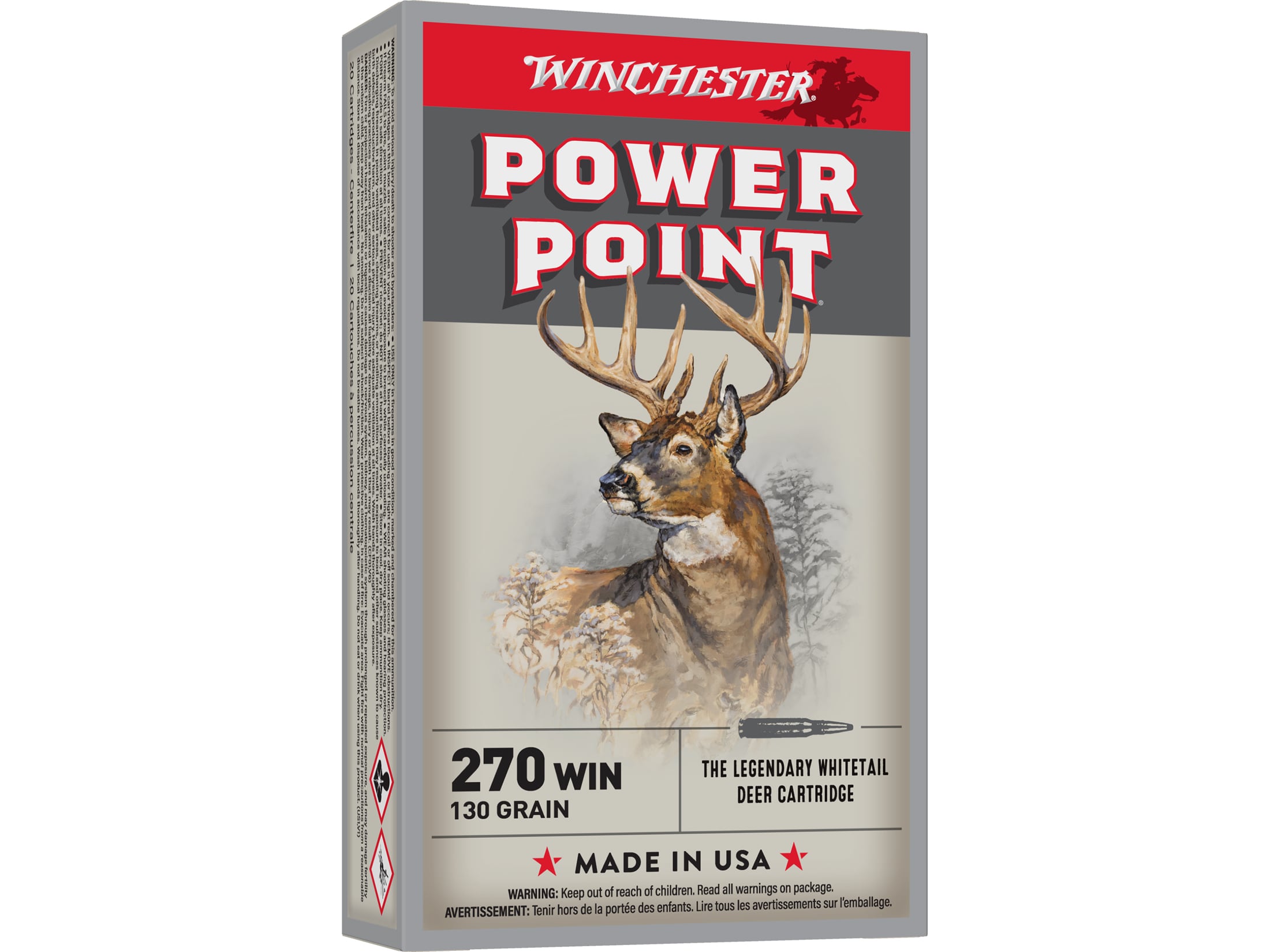 Winchester Power Point 270 Winchester Ammo 130 Grain Jacketed Soft Point Box of 20