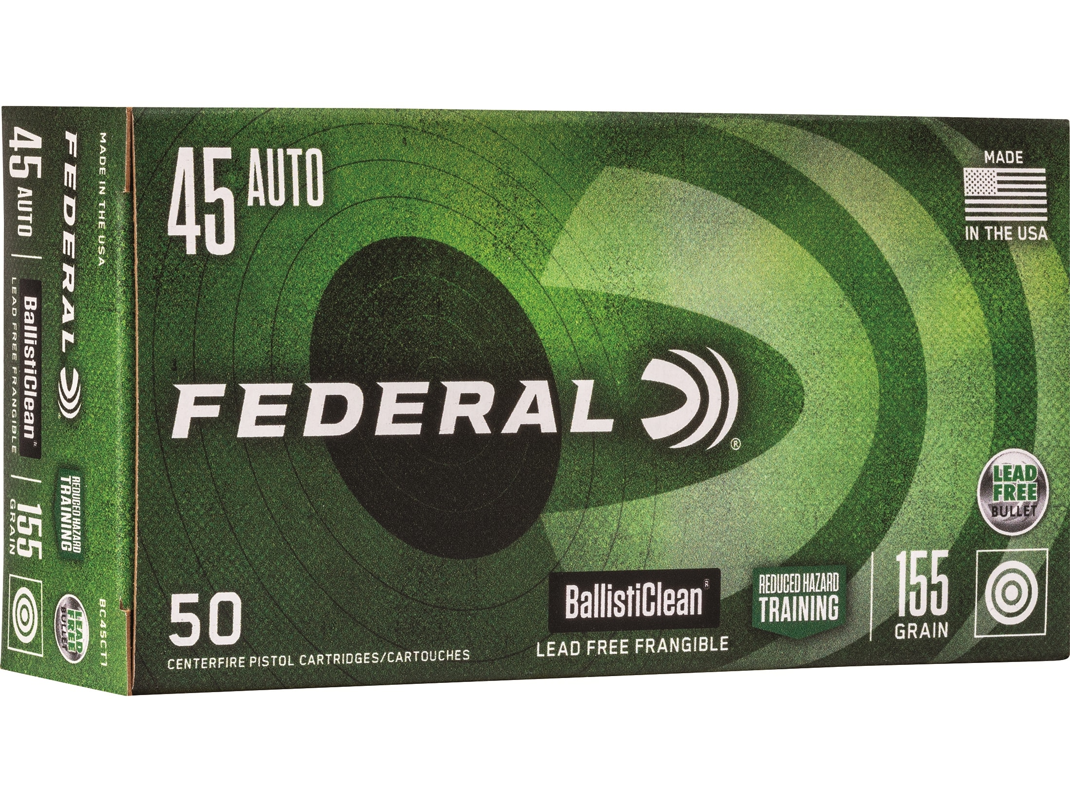 Federal Premium BallistiClean RHT 45 ACP Ammo 155 Grain Flat Nose Lead Free Box of 50