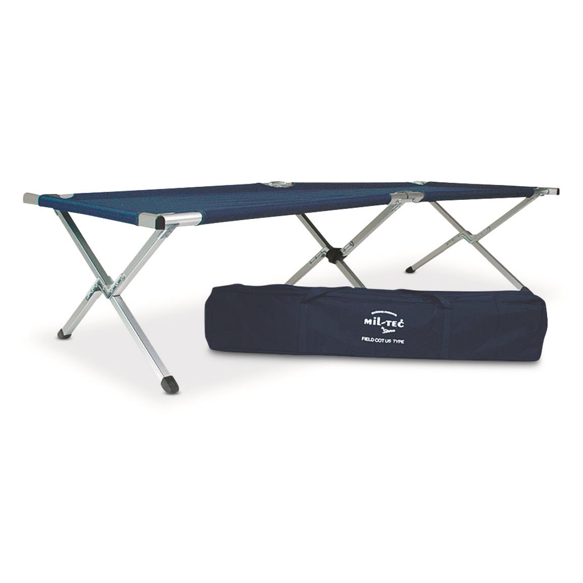 Mil-Tec Aluminum Folding Cot with Bag, Dark Blue